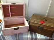 | 2Fで制作している木工商品救急箱です。ナチュラルカラーで作っています。 色のオーダー可能です。 | 2Fで制作している裁縫商品 浴衣の裂き編みポーチ。革でタグを付けてナチュラルに仕上げています。 | 2Fで制作している刺繍商品 ジーンズ生地に刺繍を行い、サイドファスナーバックにしています。 |
