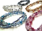 | スパイラルロープ編みで繊細なデザインに仕上げたスパイラルネックレス。 胸元のトップ部分は、ラメ入りの煌めく楕円パーツにまわりをペヨーテステッチ編みで飾り付けています。 グラデーションの色彩にこだわった 落ち着いた色合いが大人らしく、古美色のリーフがお洒落に着飾るラグジュアリーなネックレスです。 | 3連のゴムブレスレットです。 カットの綺麗なガラスビーズが高級感を増し、手元を動かすたびにきらきらと輝きます。グラデーションの色使いと程よいボリュームが存在感あるデザインです。 ゴムのブレスレットなので簡単に着け外しができます。 |