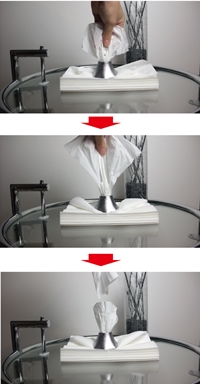 ティッシュの束の上に置くだけで、一枚一枚取り出せるのです。