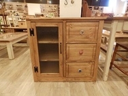 | キャビネット。 ナチュラル仕上げ。お客様が好きな取っ手をチョイス。自分好みにカスタマできます。 | アンティーク仕上げのテレビ台。 ガラスはチェッカーガラス、デザインもお客様の指定です。 | アンティークデスク。 サイズもオーダーできます。木の温もりが感じられます。 学習デスクで小学生1年生に人気です。 |