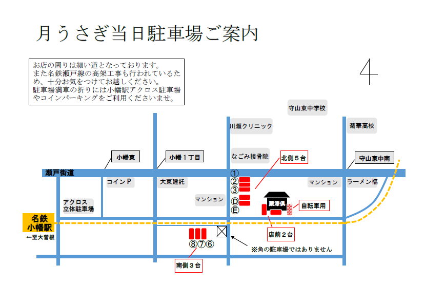 駐車場に限りがあります。お気をつけてお越しくださいませ。