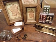 商品の一部をご紹介いたしますと、スペイン産のレザー・ブリリオを使った収納力、高級感のあるシンプルなトートバッグ、インディゴブルーのチュニック、ワンピース、ロングスカート、テンセルデニムフレアパンツ、カシュクールロングカーディガン、草木染めのストール、アームカバー、つけ衿、バングル、カチューシャ、ヘアゴム、タティングレースの作品各種、ハンドメイドのアクセサリー、ウッドフレーム、人気のサイズ調整できる帽子、木製のカトラリー、バイカラーのクラッチバックなど、毎日いろいろなアイテムが入荷するそうなので毎回来店するたびに目新しさを感じます。