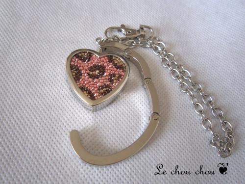 ハンドメイド作品:スワロフスキーデコ☆レオパードバッグハンガー(ハート型)